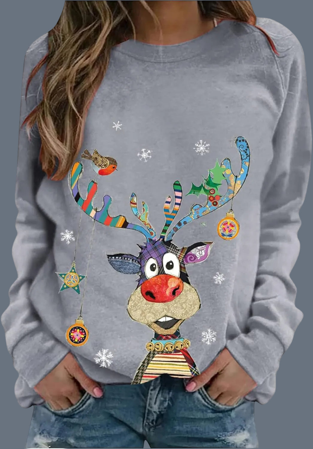 Quinty brengt het feestgevoel tot leven met een grillige rendierprint, waardoor je kleding verandert in een doek van kerstvreugde.