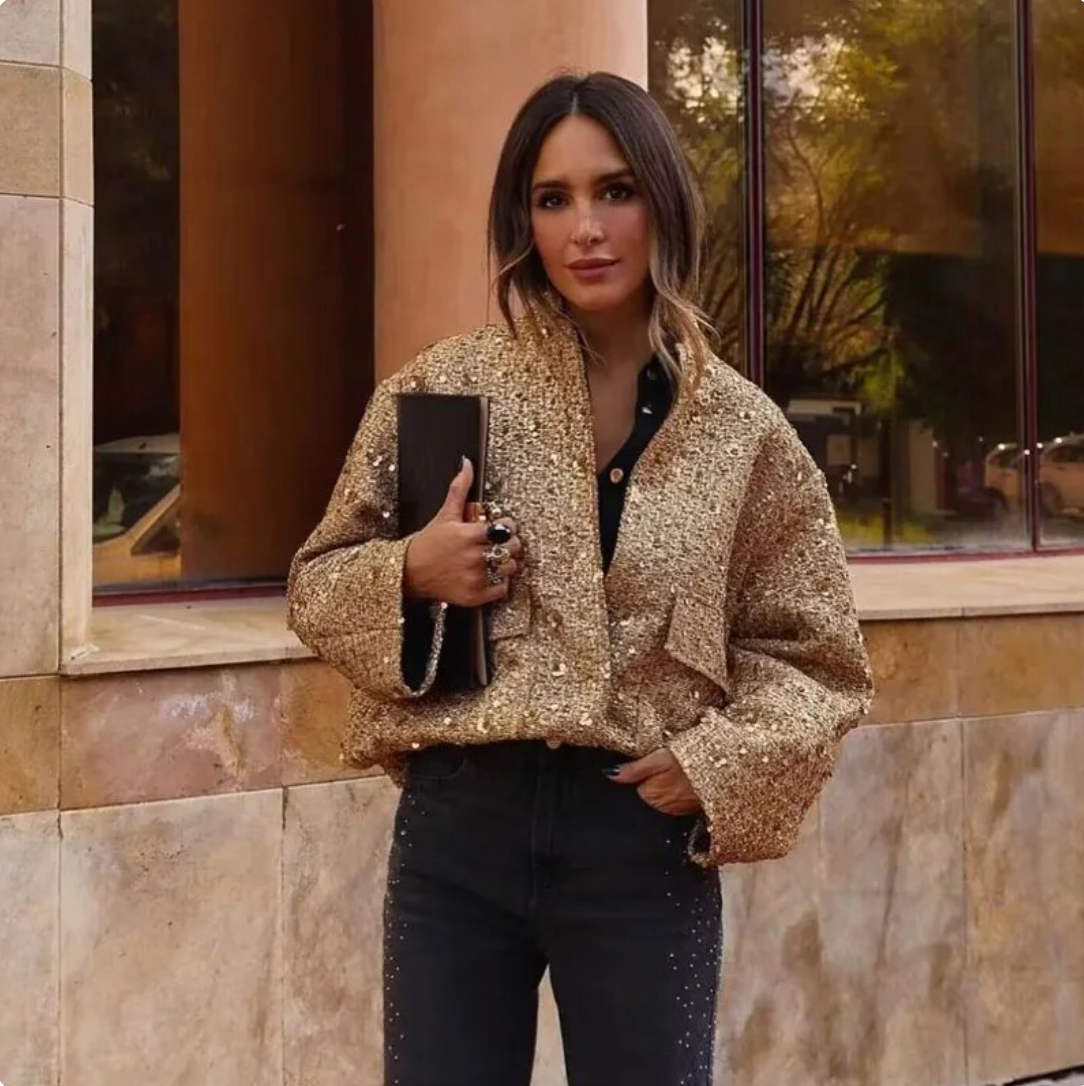 Stap in de spotlight met de Brooklyn golden jas - want jij verdient het om te schitteren!