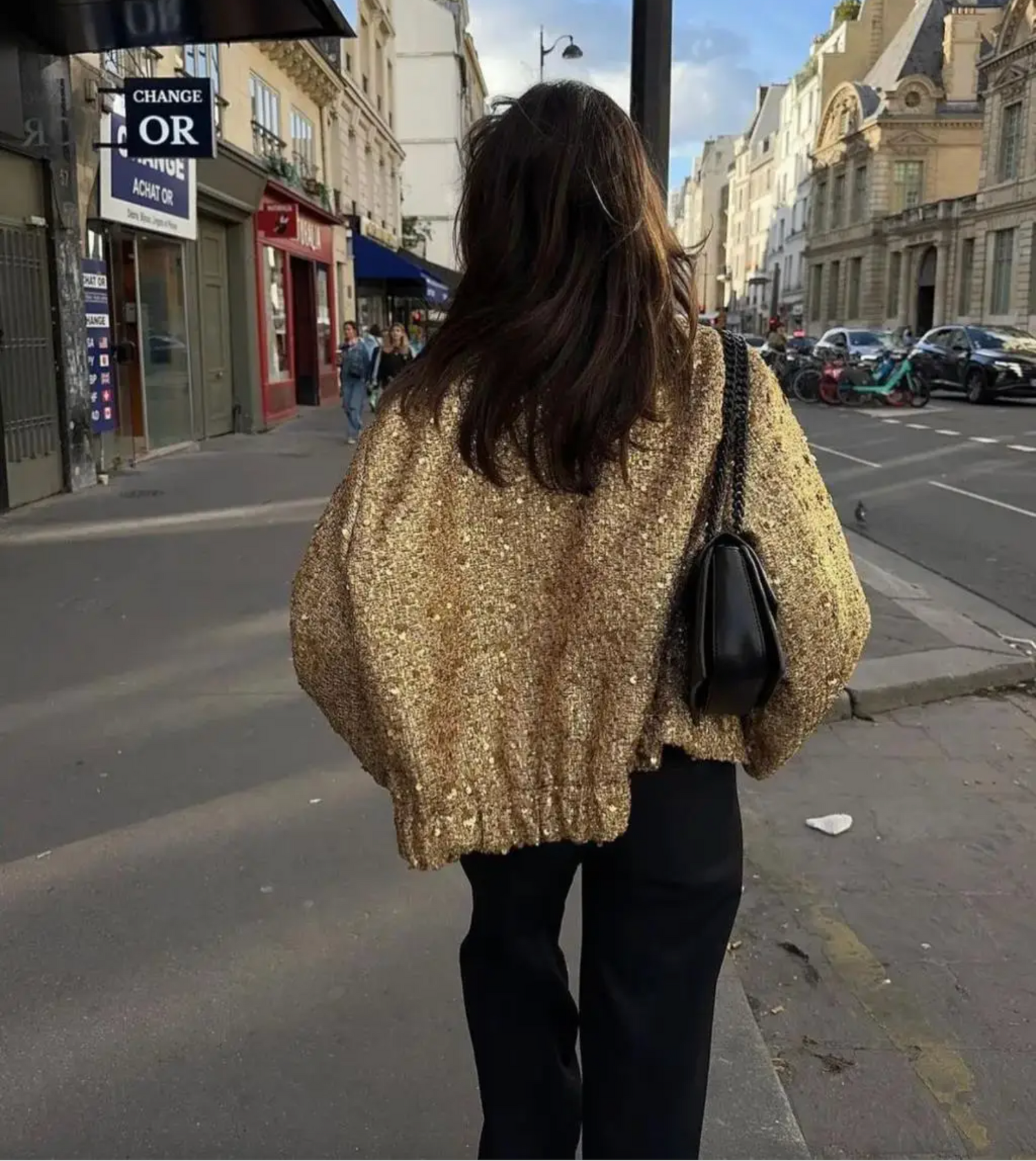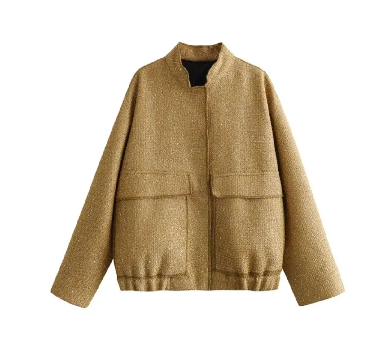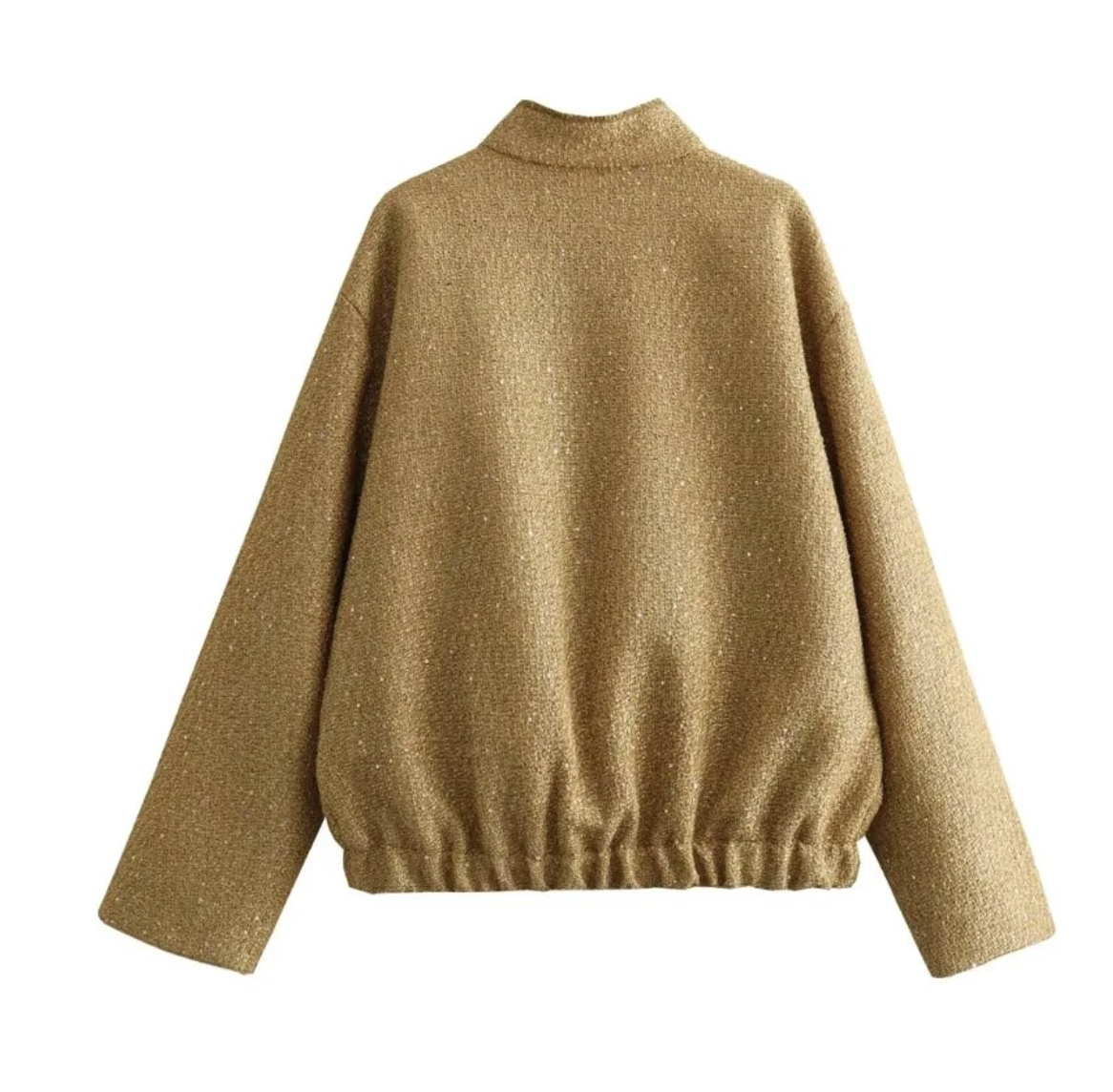 Maak kennis met je modedroom die uitkomt - de Brooklyn gouden jas, een overmaats bomber die chic en draagcomfort moeiteloos combineert.