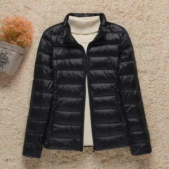 Gloednieuwe Dunne Donsjas: Blijf voorop in de mode met deze nieuwste toevoeging, die warmte biedt zonder het volume.
