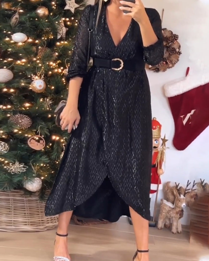 Veelzijdig voor alle seizoenen: Met lange mouwen en een normale pasvorm is deze jurk ideaal voor de lente, herfst en winter. Het toegevoegde detail van een split versterkt de stijlvolle uitstraling, waardoor hij geschikt is voor zowel overdag als 's avonds.