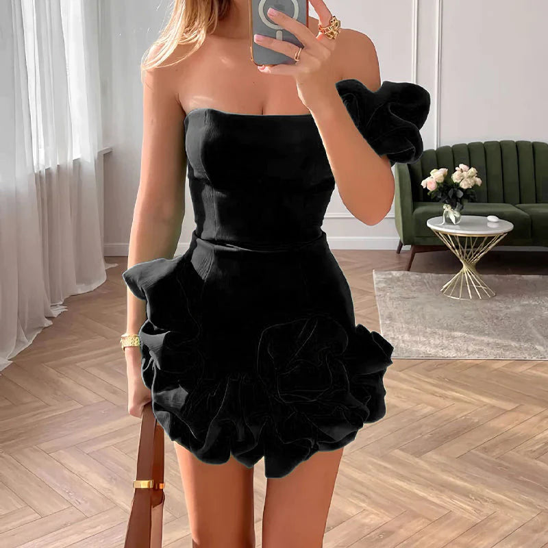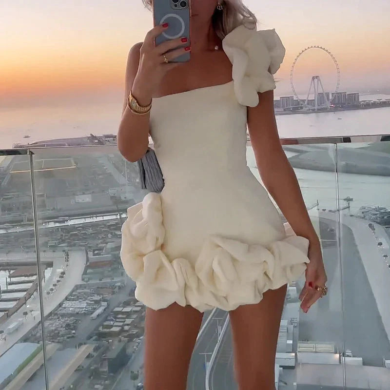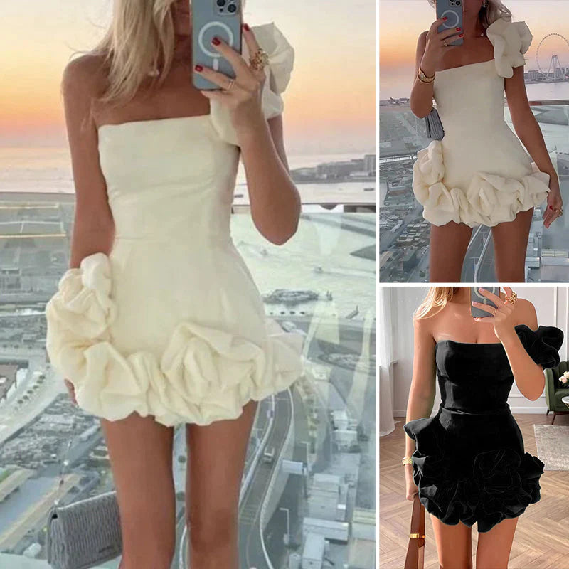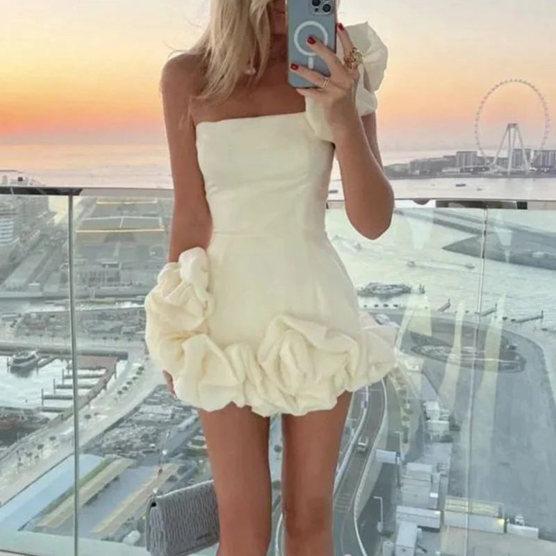 Maak je klaar om hoofden te laten omdraaien en voel je een echte fashionista met onze Rozenknop Mini Jurk!