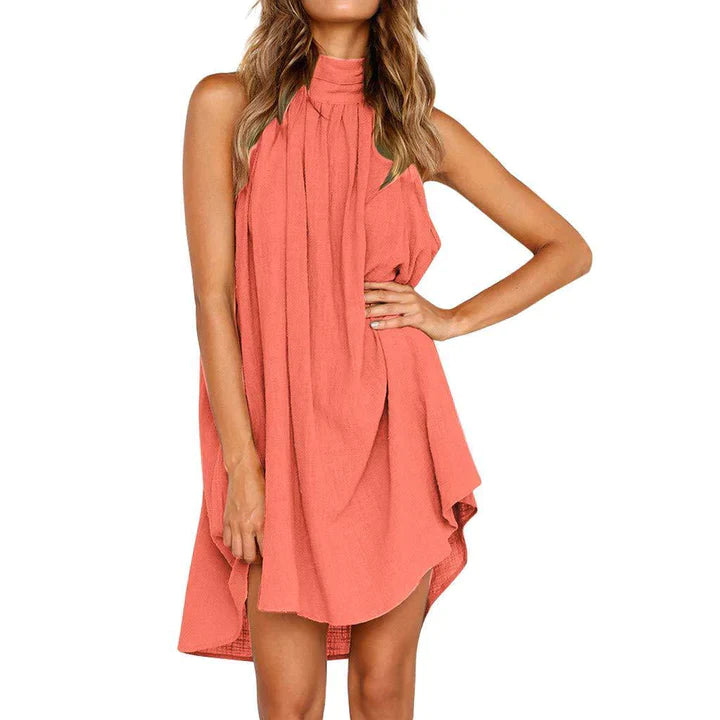 Comfortabele stof: We weten hoe belangrijk comfort is, vooral in de warme zomermaanden. Daarom is onze jurk gemaakt van een lichtgewicht mix van katoen en linnen. De ademende en zachte stof houdt je de hele dag koel en comfortabel. Zeg maar dag tegen plakkerige en oncomfortabele outfits en zeg hallo tegen het ultieme comfort van onze mouwloze mini-jurk.