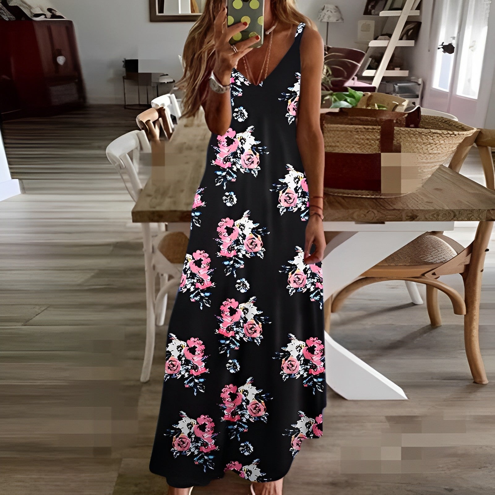 Comfort en luchtigheid: Deze jurk is gemaakt met het allerhoogste comfort in gedachten, zodat je zelfs op de heetste zomerdagen koel en comfortabel blijft. De jurk is mouwloos en heeft spaghettibandjes voor maximaal ademend vermogen en bewegingsvrijheid.