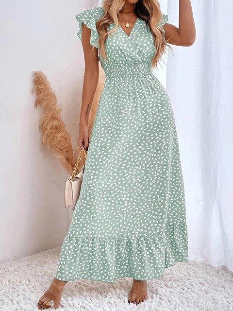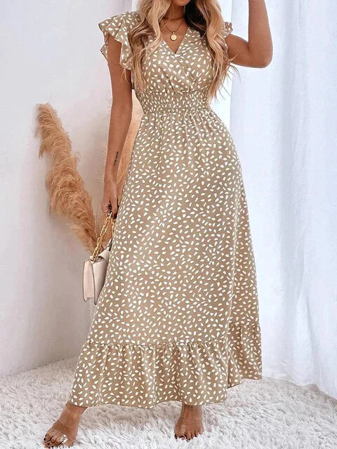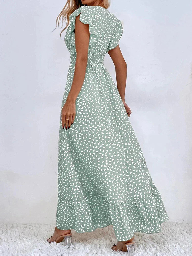 Das Zoa-Sommerkleid – Eleganz und Komfort in einem! Bereiten Sie sich darauf vor, mit dem Zoa-Sommerkleid zu glänzen, das mit seinem eleganten Tupfenmuster mühelos zu jedem Anlass passt.