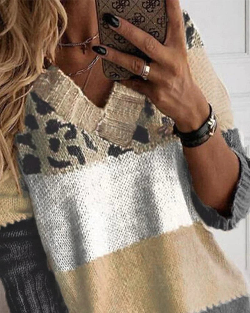 Steigere dein Modelevel mit unserem gestrickten Pullover mit Leopardenmuster und bunten Ärmeln – das ultimative Stil-Statement, nach dem du dich gesehnt hast!