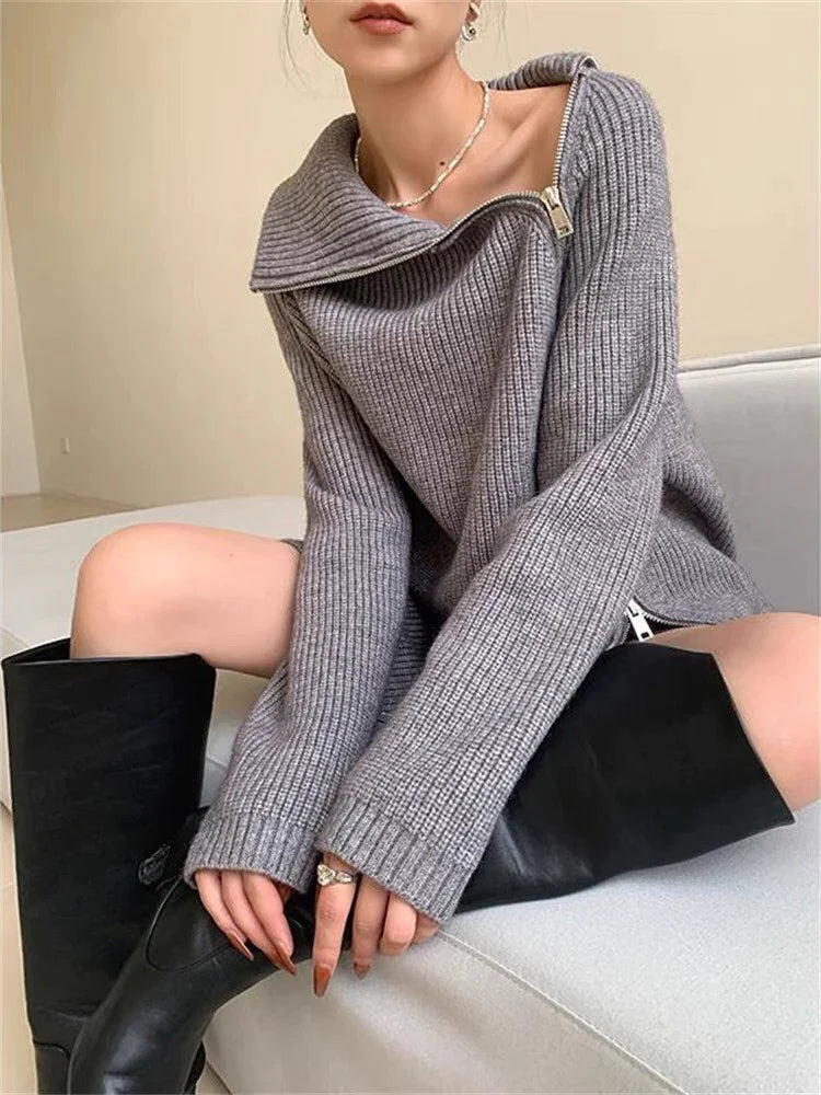 This sweater embodies effortless style and offers the perfect combination of comfort and casual elegance. With its loose fit and subtle zipper detail, it is the ideal choice for versatile and stylish dressing.