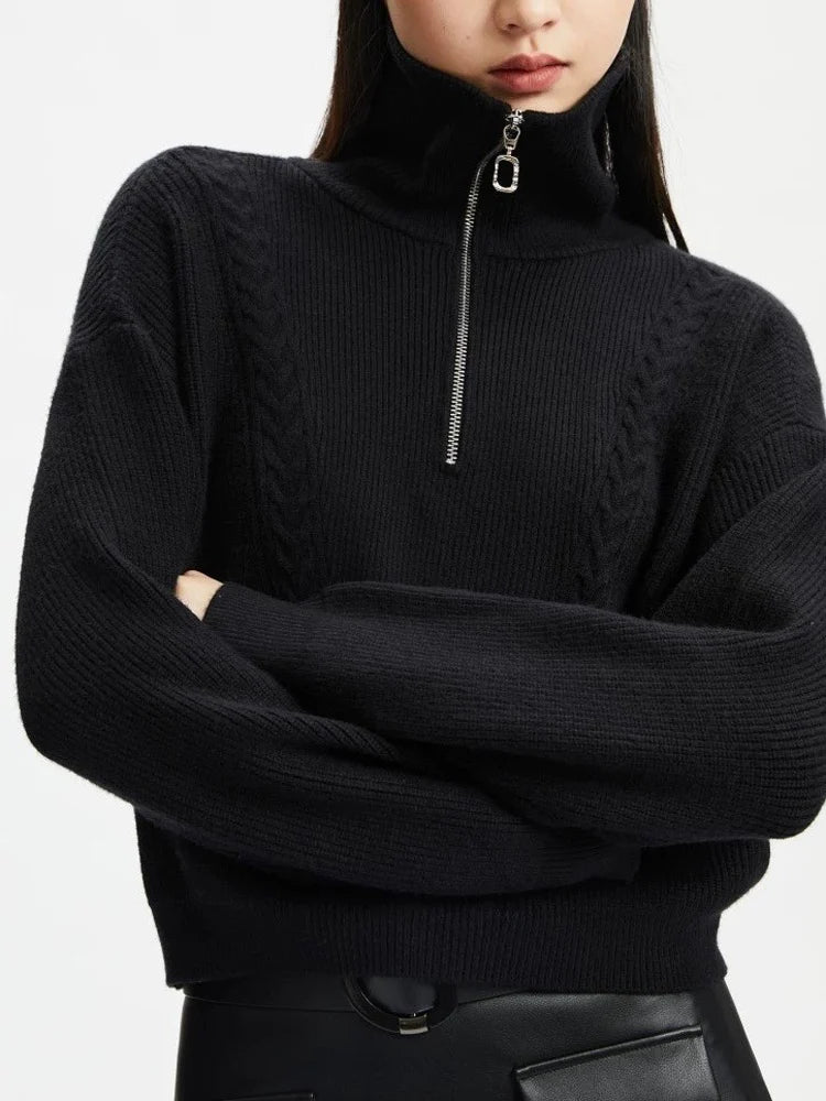Adoptez la saison à venir avec le pull tricoté Luna, un véritable compagnon pour toutes les occasions. Avec son motif torsadé, son col chemise et sa fermeture éclair pratique, ce pull incarne le mélange parfait de chaleur, de confort, de style et de polyvalence.