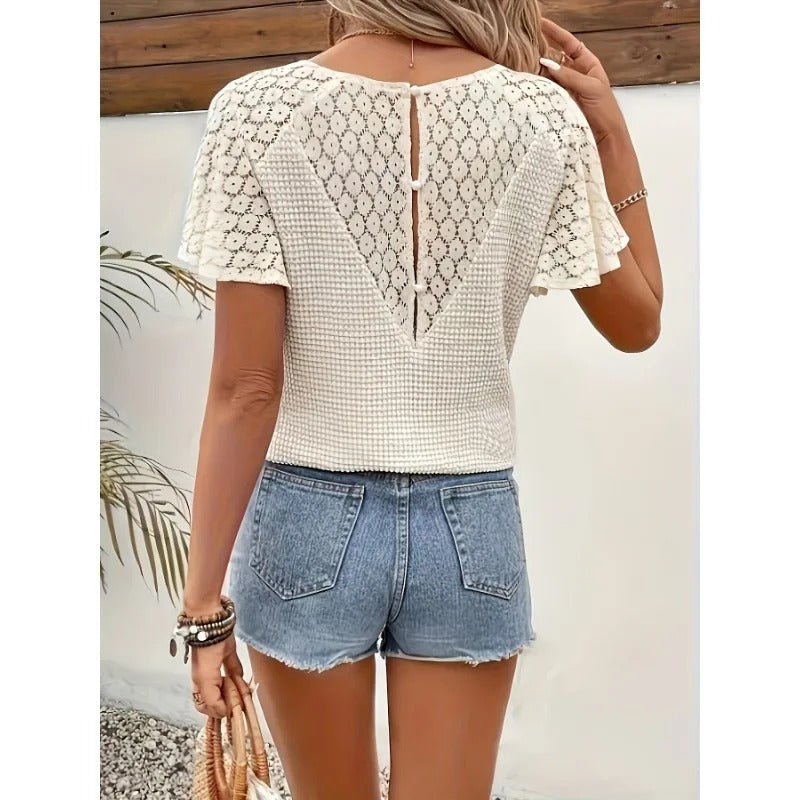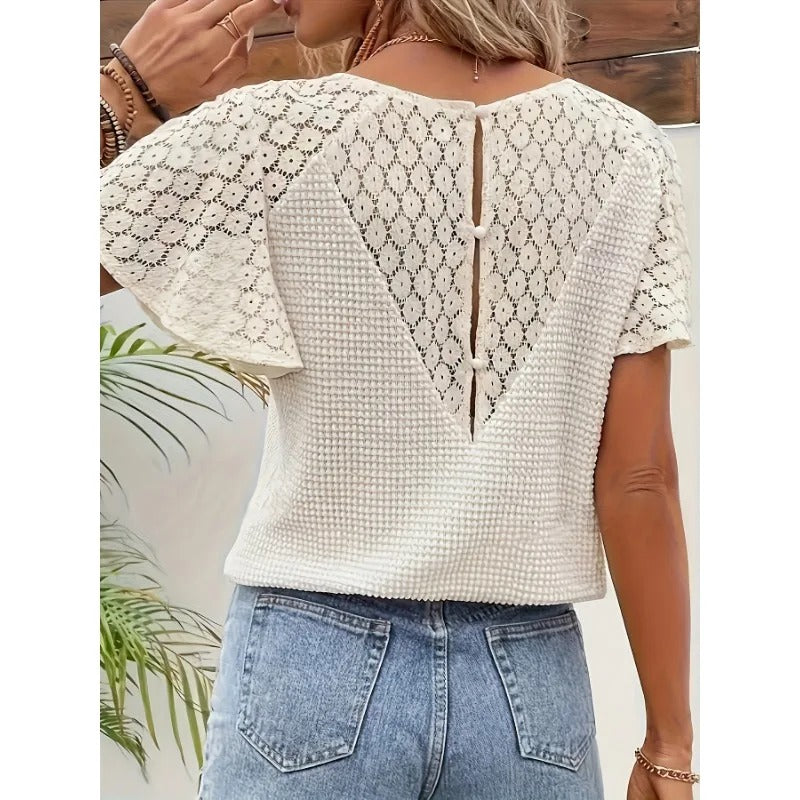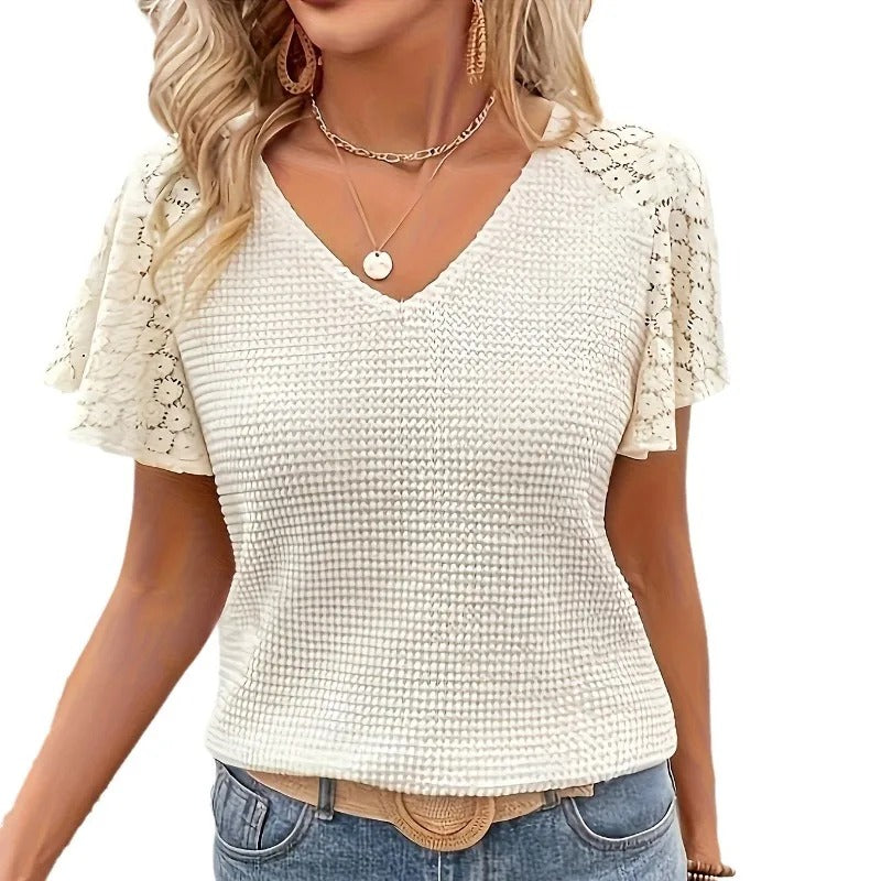 DÉCOUVREZ L'INDISPENSABLE QUI CONQUÉRIT TOUTES LES FEMMES ! T-SHIRT EN DENTELLE ET COTON À COL EN V !