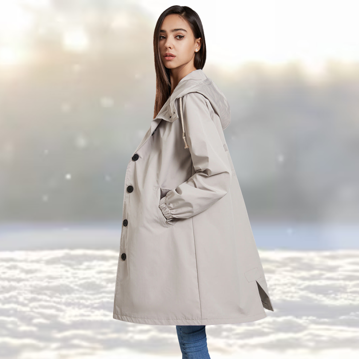 • Design classico senza tempo: Azura ha uno stile trench coat classico, rendendolo un capo incredibilmente versatile che si adatta a qualsiasi abbigliamento, dal casual al formale.
